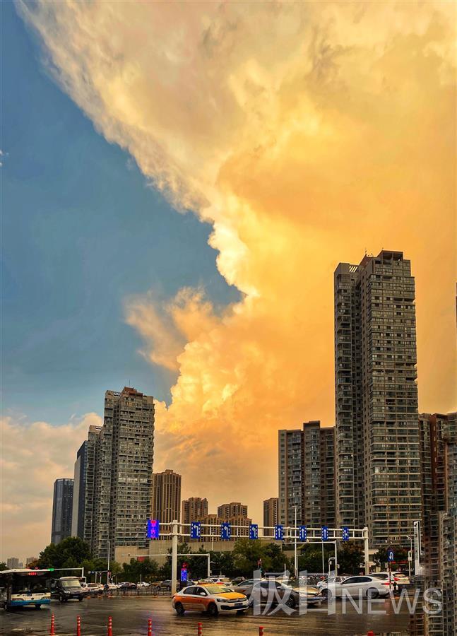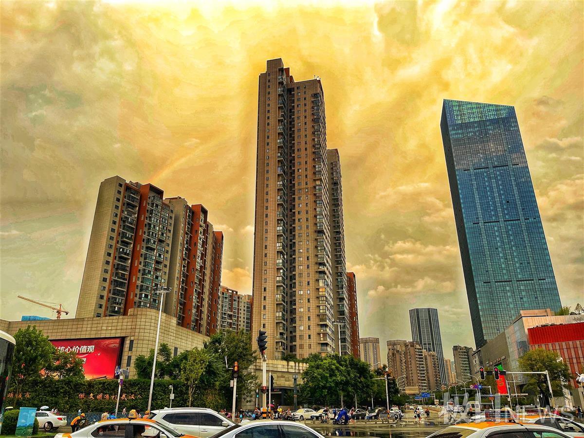 9月24日下午5時30分左右,一場突如其來的暴雨降臨江城武漢,大雨給出行的人們增添了些許麻煩,但雨后美麗的晚霞卻給大家?guī)砹藟艋冒愕母杏X。