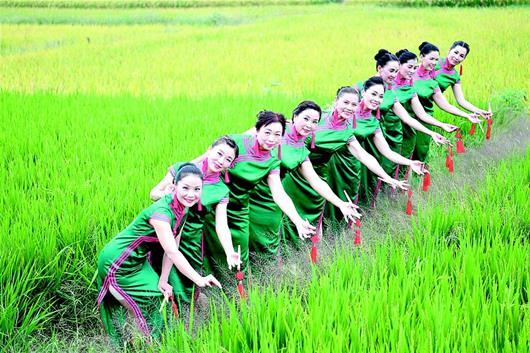 9月12日,公安縣天露湖國(guó)家農(nóng)業(yè)公園金燦燦的稻田里,民間文藝愛(ài)好者共慶今秋豐收。當(dāng)日,首屆中國(guó)農(nóng)民豐收節(jié)·公安篇活動(dòng)舉行。公安縣深化農(nóng)村各類(lèi)改革,現(xiàn)代農(nóng)業(yè)持續(xù)高速發(fā)展,公安葡萄、公安牛肉、閘口小龍蝦、章田寺大米等多個(gè)品牌榮獲國(guó)家地理標(biāo)志證明商標(biāo)。