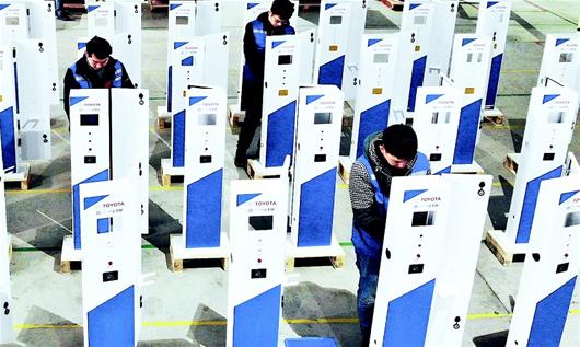 2月26日,湖北追日電氣股份有限公司(襄陽(yáng))員工在裝配充電樁。近年來(lái),該公司在行業(yè)內(nèi)率先開(kāi)發(fā)出歐標(biāo)和日標(biāo)等領(lǐng)先水平的電動(dòng)汽車充電產(chǎn)品,并成功應(yīng)用于法國(guó)、德國(guó)、日本等30多個(gè)國(guó)家汽車廠商,走在了“充”向世界的前列。