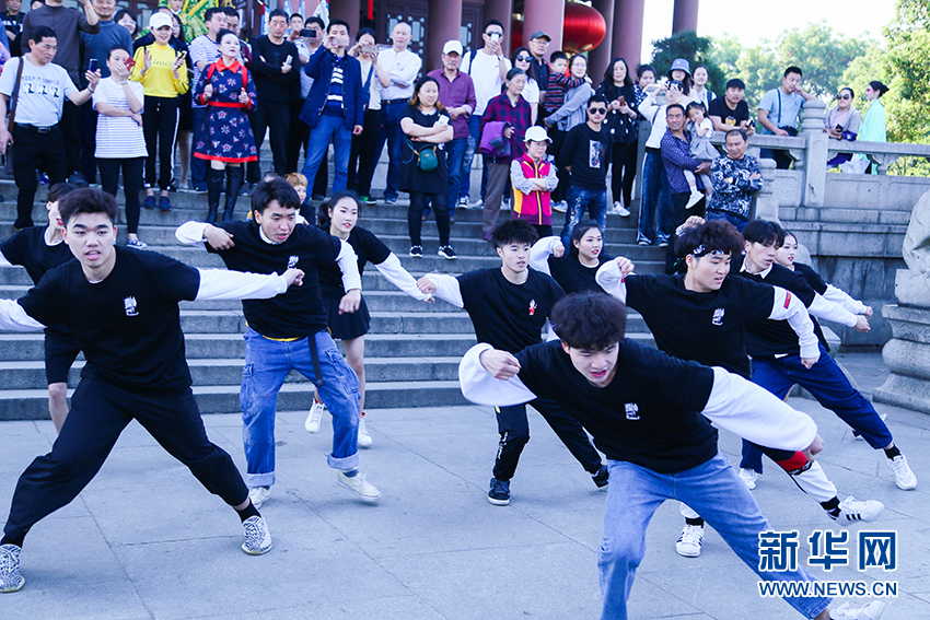新華網(wǎng)武漢4月7日電(連迅)一場(chǎng)精彩的戲曲快閃活動(dòng)7日在武漢黃鶴樓下舉行。當(dāng)天來自中南財(cái)經(jīng)政法大學(xué)、武漢音樂學(xué)院等高校的60多位戲曲愛好者不但表演了街舞等現(xiàn)代舞蹈,還身著戲服表演了傳統(tǒng)戲曲唱段《定軍山》《八板》(西皮)等。在國內(nèi)四大名樓之一的黃鶴樓下,傳統(tǒng)文化與現(xiàn)代藝術(shù)相融合,吸引眾多游客駐足欣賞。