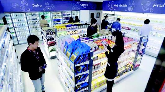 17日上午,京東無人超市60平方米的空間里,人潮涌動。雖然沒有店員值守,但京東并不怕有人順手牽羊。因為里面有40個攝像頭,一旦有人行為不檢點被拍到,下次他將進(jìn)不了超市。