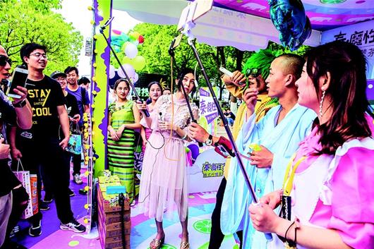 圖為:4月29日,直播節(jié)現(xiàn)場,人氣主播線下與粉絲們互動(dòng)。(湖北日報(bào)全媒記者 梅濤 通訊員 胡佳 攝)