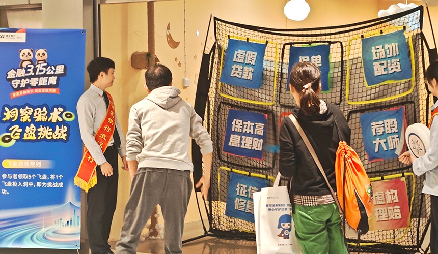 最受矚目的“洞察騙術(shù)飛盤挑戰(zhàn)”互動(dòng)環(huán)節(jié),讓反詐學(xué)習(xí)秒變?nèi)の队螒;顒?dòng)現(xiàn)場設(shè)置專屬互動(dòng)游戲道具,網(wǎng)洞上貼著“保本高息理財(cái)”“薦股大師”“虛假貸款”等常見騙局標(biāo)簽,參與者投擲飛盤擊中標(biāo)簽,便完成一次“騙局識(shí)別強(qiáng)化訓(xùn)練”。這種視覺化、沉浸式的游戲形式,讓現(xiàn)場笑聲不斷,既拉近了與聽障群體的距離,更讓反詐知識(shí)入腦入心。挑戰(zhàn)成功者還能獲得印有防詐知識(shí)的環(huán)保購物袋、紙巾等實(shí)用禮品,讓反詐意識(shí)融入日常生活的點(diǎn)滴。