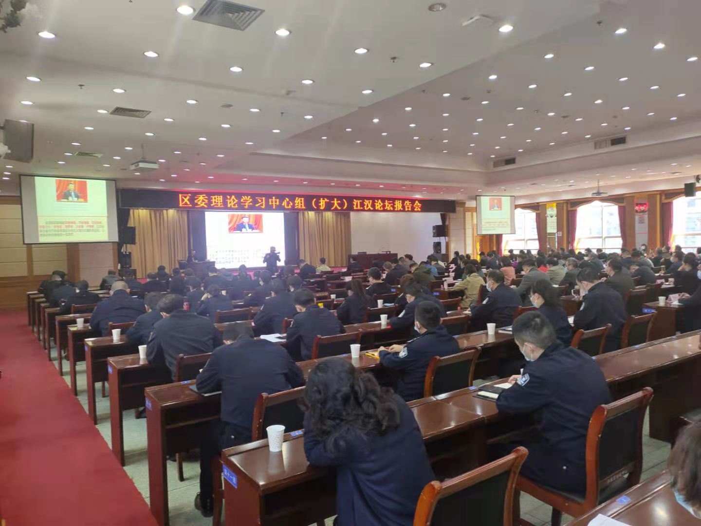 央廣網(wǎng)武漢3月25日消息(記者張迪 通訊員朱素芳 鄧文錦)3月25日下午,武漢市江漢區(qū)委理論學(xué)習(xí)中心組(擴大)舉辦“江漢論壇”報告會。會上,武漢市委黨校教授翟一博作黨史學(xué)習(xí)教育輔導(dǎo)報告,江漢區(qū)委、區(qū)人大常委會、區(qū)政府、區(qū)政協(xié)領(lǐng)導(dǎo)班子成員及各街道各部門各單位黨政主要負(fù)責(zé)人參加學(xué)習(xí)。
