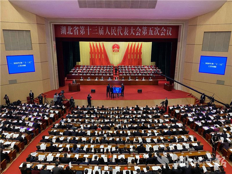 2021年1月24日上午,湖北省十三屆人大五次會議在武漢洪山禮堂隆重開幕。(湖北日報全媒記者 陳勇 攝)