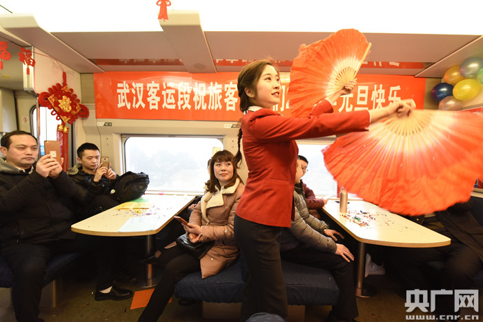 武漢客運(yùn)段城際動(dòng)車(chē)組車(chē)間黨總支書(shū)記章瓊表示,武漢客運(yùn)段一直致力于打造精品文化列車(chē),2018年元旦來(lái)臨之際舉辦這個(gè)活動(dòng)是為了讓旅客展望新年,感受祝福,讓旅途更加溫馨溫暖,如同高速發(fā)展的中國(guó)鐵路一般,駛向美好的未來(lái)。