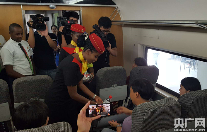 為更好滿足當(dāng)?shù)芈每偷某鲂畜w驗(yàn),肯尼亞鐵路公司派出4名乘務(wù)人員前往中國(guó)參觀學(xué)習(xí),本次在漢學(xué)習(xí)培訓(xùn)持續(xù)兩天,7月16日,肯尼亞“動(dòng)姐”還亮相中國(guó)G555次高鐵,在武漢客運(yùn)段“鳳舞九天”示范班組乘務(wù)員們的帶領(lǐng)下,臨時(shí)客串了一把動(dòng)車乘務(wù)員。