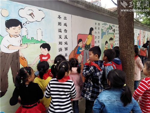 荊楚網(wǎng)消息(通訊員 向金莉、楊瀟)“弟子規(guī),圣人訓(xùn);首孝悌,次謹(jǐn)信。泛愛眾,而親仁;有余力,則學(xué)文!币粰M一豎、一撇一捺間,《弟子規(guī)》被武漢輕工大學(xué)的大學(xué)生們“畫”到了先進(jìn)小學(xué)的墻上。