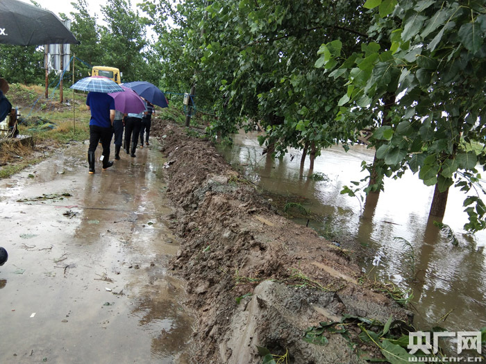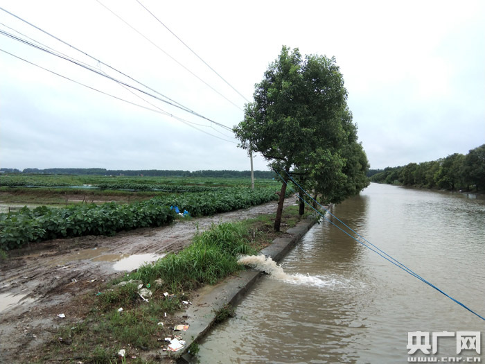 圖三:監(jiān)利市遭遇持續(xù)強(qiáng)降雨,河渠水位普漲,當(dāng)?shù)刂鹜翂巫钃鹾樗。央廣網(wǎng)發(fā) 記者左艾甫 攝