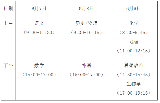 高考時(shí)間回到6月 考試時(shí)長保持不變
