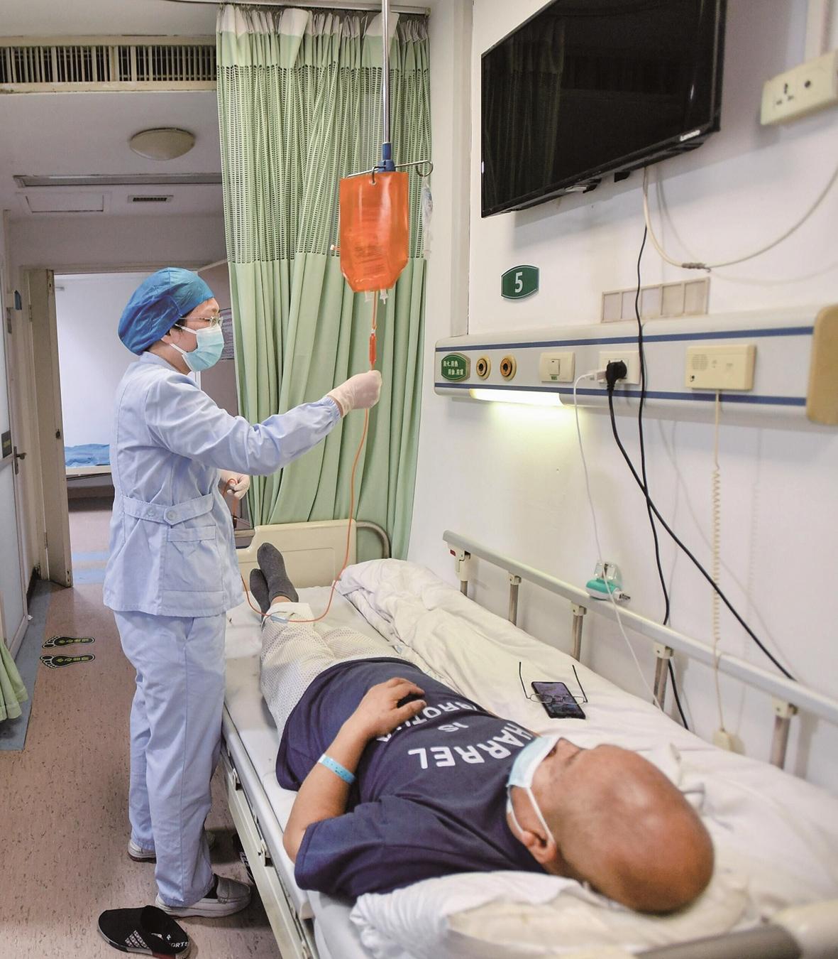 醫(yī)護人員昨為患者使用降價后的抗癌藥品 楚天都市報極目新聞記者王永勝攝
