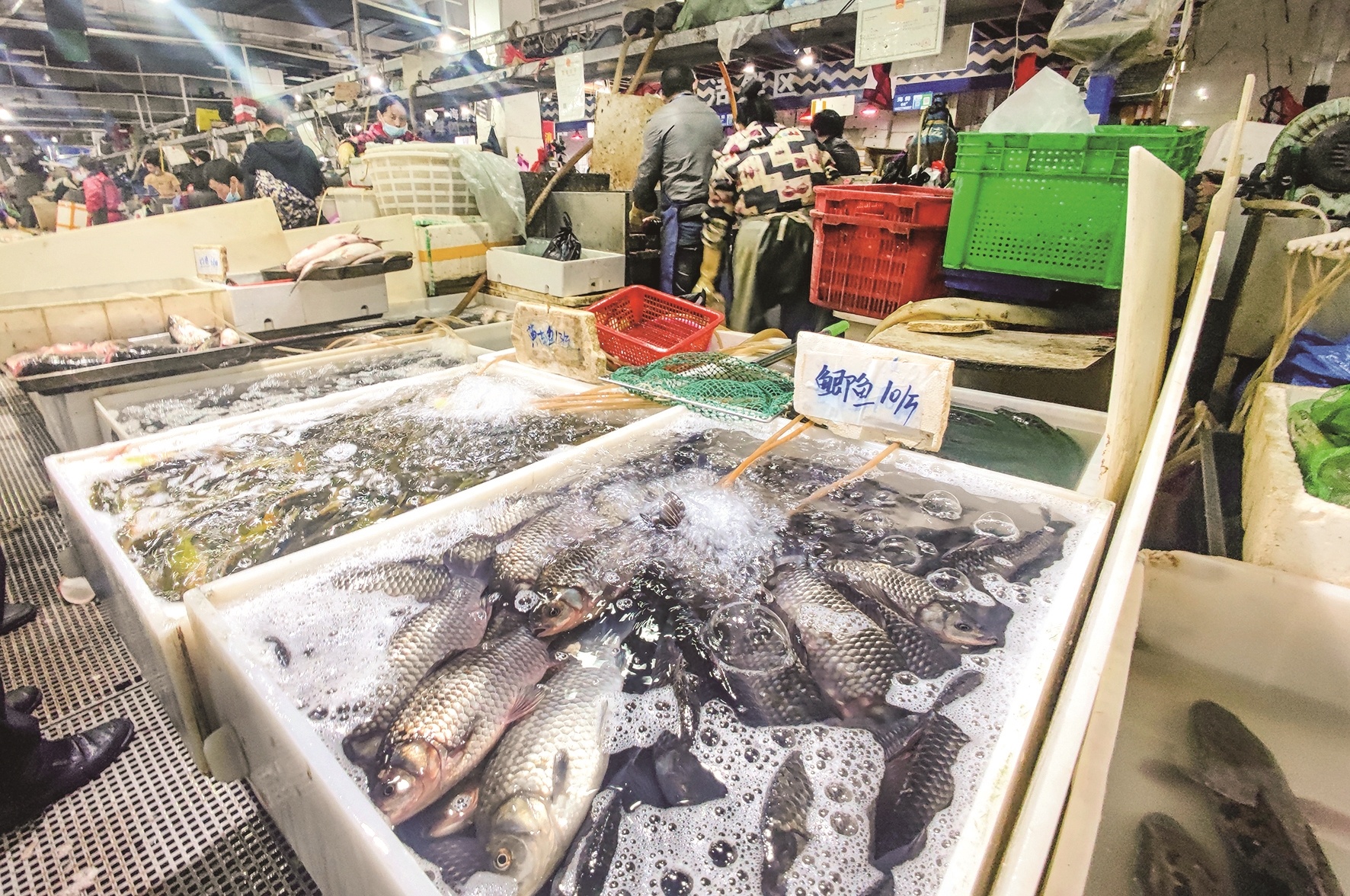 10月24日一早,漢口黃孝河路的一家生鮮賣場里,剛剛到貨的淡水魚在水產(chǎn)檔口的大盆子里暢游,面前圍了不少正在挑選的市民。