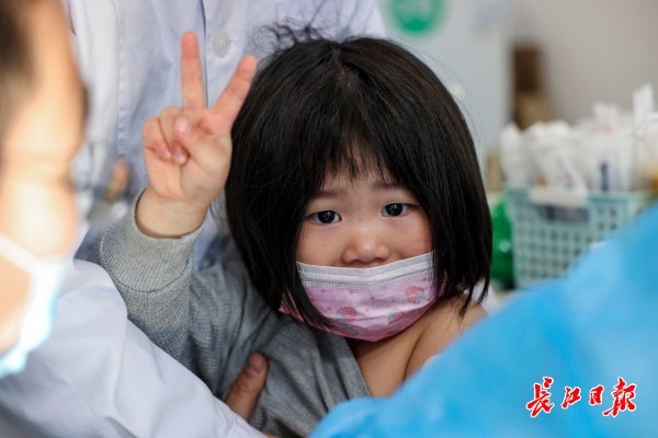 長(zhǎng)江日?qǐng)?bào)大武漢客戶端11月14日訊(記者武葉 通訊員王敏)“不要怕,阿姨輕一點(diǎn)!薄罢姘,真勇敢!”11月13日上午,頂琇晶城幼兒園一百多名小朋友在老師帶領(lǐng)下,到唐家墩街社區(qū)衛(wèi)生服務(wù)中心集中接種新冠病毒疫苗,現(xiàn)場(chǎng)不時(shí)聽(tīng)到醫(yī)護(hù)人員為小朋友加油打氣。