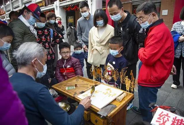 春節(jié)期間,在江岸吉慶街各式各樣的傳統(tǒng)民俗活動吸引不少市民前來游玩。熙來攘往的吉慶街里,除了不少父母帶著小朋友前來游玩感受體驗春節(jié)里的傳統(tǒng)民俗活動,也不乏情侶們踏春出游,感受濃濃春意。