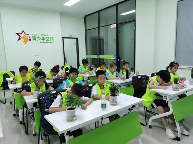 圖為:洪山街道林嶼岸春天社區(qū)青少年空間“練習(xí)專(zhuān)注力”主題夏令營(yíng)