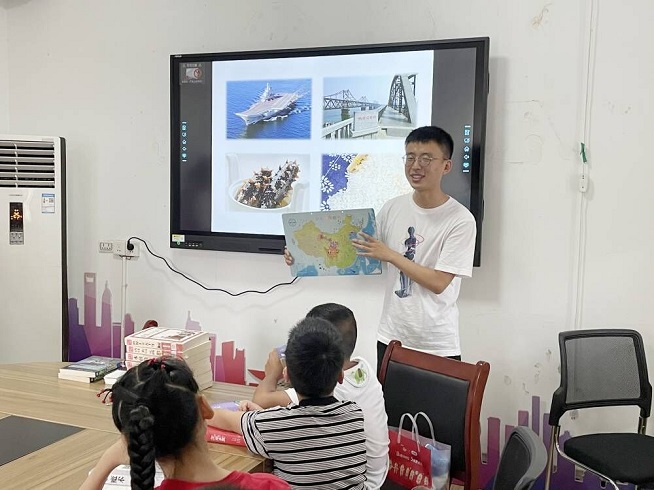 在洪山街道大華社區(qū),志愿者老師以視頻方式展示中國(guó)共產(chǎn)黨發(fā)展歷程中的關(guān)鍵時(shí)間節(jié)點(diǎn)及事件,用相關(guān)時(shí)期的繪畫(huà)作品為切入點(diǎn),引導(dǎo)學(xué)生學(xué)習(xí)紅船精神、井岡山精神和長(zhǎng)征精神的內(nèi)涵及革命故事、詩(shī)歌。