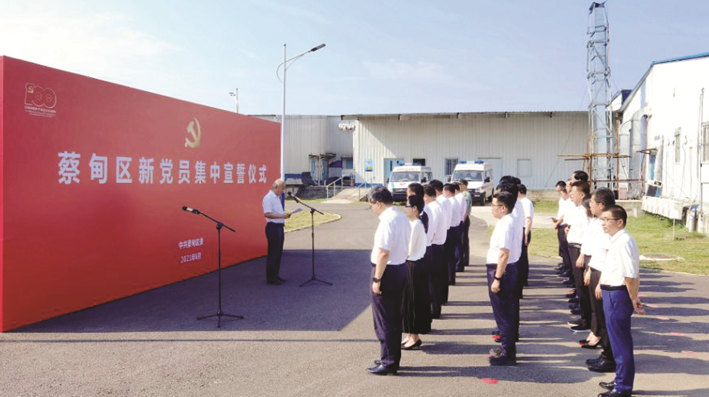“我志愿加入中國(guó)共產(chǎn)黨,擁護(hù)黨的綱領(lǐng),遵守黨的章程,履行黨員義務(wù)……”6月25日,蔡甸區(qū)100名新黨員代表在火神山醫(yī)院,面對(duì)鮮艷的黨旗莊嚴(yán)宣誓。