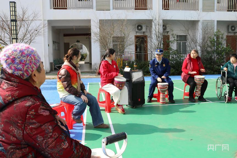 縣民政局、縣消防救援大隊(duì)走進(jìn)福利中心組織老人進(jìn)行擊鼓游戲(央廣網(wǎng)發(fā) 祝芳 攝)