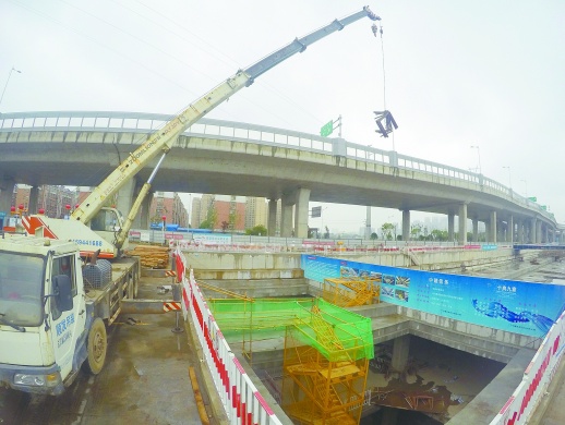 5月8日,長沙地鐵5號線三一大道站工地,施工人員在進(jìn)行吊裝作業(yè)。湖南日報記者徐行 攝