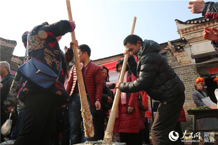 湖南郴州:古村年味濃 年會迎新春 人民網(wǎng)郴州2月5日電(李芳森)套花、花根、糖花現(xiàn)場制作,舞龍表演,手寫春聯(lián)……坳上古村是湖南郴州迄今保存較為完整的古建筑群之一,2016年被列入中國傳統(tǒng)村落第四批名錄。坳上古村自唐代始就有農(nóng)歷臘月大年前“趕年會”習(xí)俗,通過挖掘整合各種傳統(tǒng)年俗和非遺文化資源,喚起游客對傳統(tǒng)年俗文化的整體記憶。