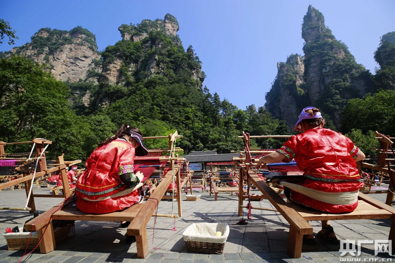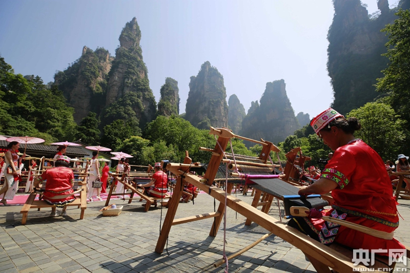 湖南張家界:土家族織錦技藝進景區(qū) 非遺展演展示精彩紛呈