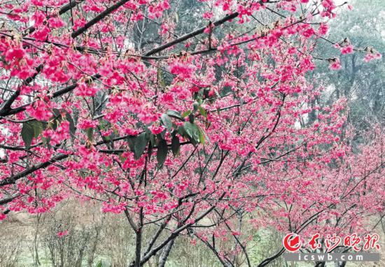 近來長沙陰雨連綿,但擋不住“春姑娘”的腳步。日前,長沙園林生態(tài)園引種的100多株吊鐘櫻花在春寒料峭中綻放,成為長沙眾多櫻花品種中開花最早的品種之一。