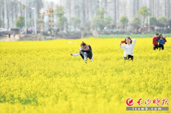 昨日,長沙天氣繼續(xù)放晴,湖南農(nóng)業(yè)大學(xué)旁的幾十畝油菜花競相綻放,風(fēng)景如畫;ㄌ锢锓曳紦浔,滿園春色引來成群的蜜蜂飛舞采蜜,不少市民也前來觀花賞景;王陵公園里的櫻花也不甘落后,在春日陽光下盛放,吸引了眾多市民拍照發(fā)朋友圈;星沙松雅湖畔的梅花朵朵開,市民暢游其中,享受和煦春光。長沙晚報全媒體記者 賀文兵 黃啟晴 王志偉 攝影報道