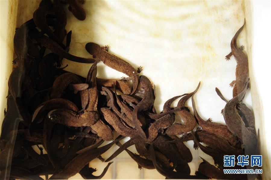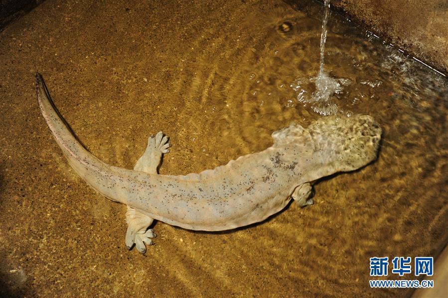 3月16日在湖南省大鯢救護(hù)中心拍攝的在野外獲救的一尾娃娃魚(yú)。 新華社記者 明星 攝 圖片來(lái)源:新華網(wǎng)