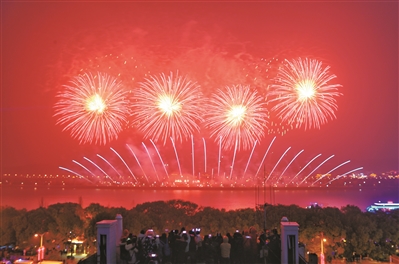 焰火慶新年,1月1日晚,絢麗的焰火在長沙市橘子洲景區(qū)上空綻放。當(dāng)晚,“沁園春·長沙”——冬之韻元旦焰火晚會在該景區(qū)舉行,慶祝2020年到來。湖南日報記者 傅聰 攝