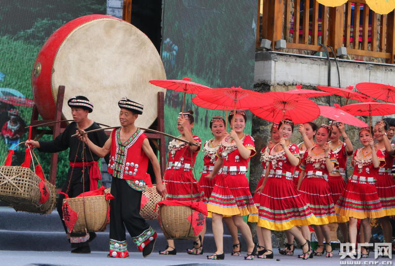 開幕式上,《太陽神舞》《多噶多耶》以及苗家敬酒歌等極具綏寧地方特色的節(jié)目及儀式彰顯濃厚的民族風情(央廣網發(fā) 陳敏捷 攝)