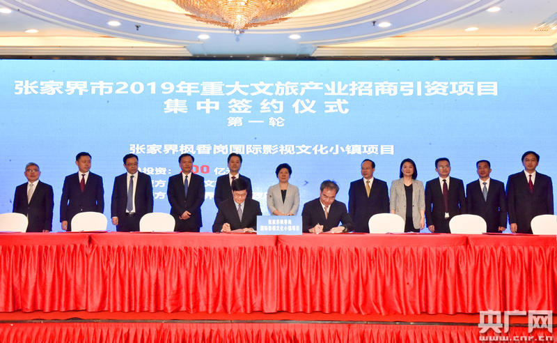 張家界2019年重大文旅產(chǎn)業(yè)招商引資項目集中簽約儀式現(xiàn)場(央廣網(wǎng)發(fā) 張潘 攝)