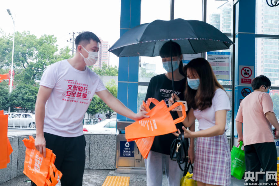 由20名志愿者組成的騎行小分隊從五一大道華美歐大廈出發(fā),吸引了很多路人的目光。盡管當(dāng)天上午長沙下著雨,但絲毫沒影響到志愿者們的干勁兒。在沿線的地鐵口,志愿者向行人發(fā)放安全騎行宣傳品及倡議書。勸導(dǎo)小分隊的志愿者們在五一路、韶山路、解放路口,對堵塞地鐵口、消防通道、學(xué)校門口、人行道的共享單車進(jìn)行了清理,并引導(dǎo)行人規(guī)范停車,對逆行、闖紅燈等違反交通規(guī)則的騎手進(jìn)行勸誡。