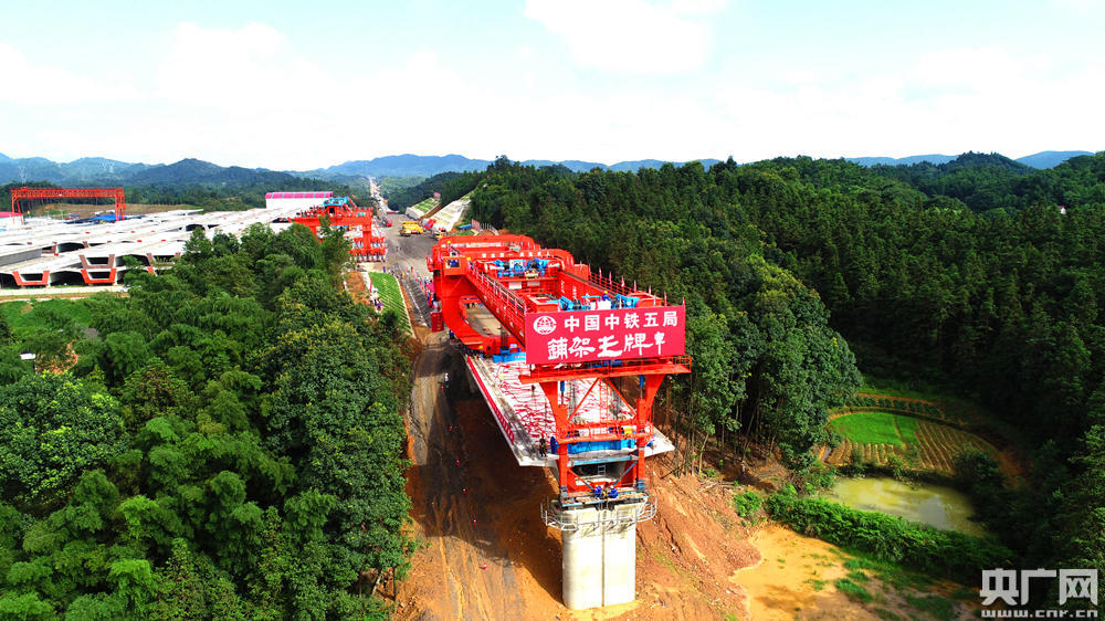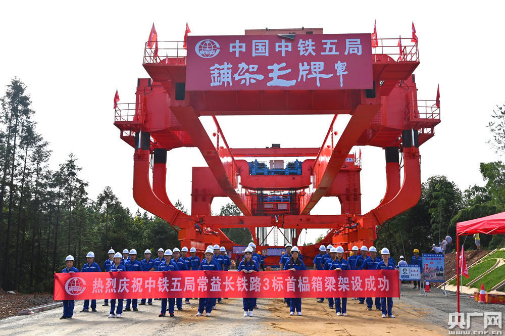 常益長(zhǎng)高鐵首榀箱梁成功架設(shè)(央廣網(wǎng)發(fā) 中鐵五局供圖)