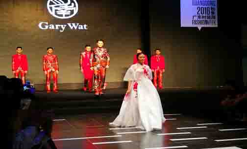 表彰儀式上,中國(guó)十佳服裝設(shè)計(jì)師屈汀南帶來(lái)20套極具嶺南特色的廣繡服裝作品展示。