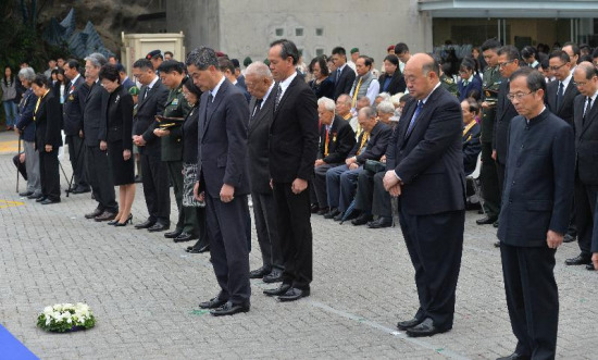 香港特別行政區(qū)政府昨天(13日)于香港海防博物館舉行紀(jì)念儀式,悼念南京大屠殺死難者和日本侵華戰(zhàn)爭期間的死難者。行政長官梁振英出席儀式,并致獻(xiàn)花圈。
