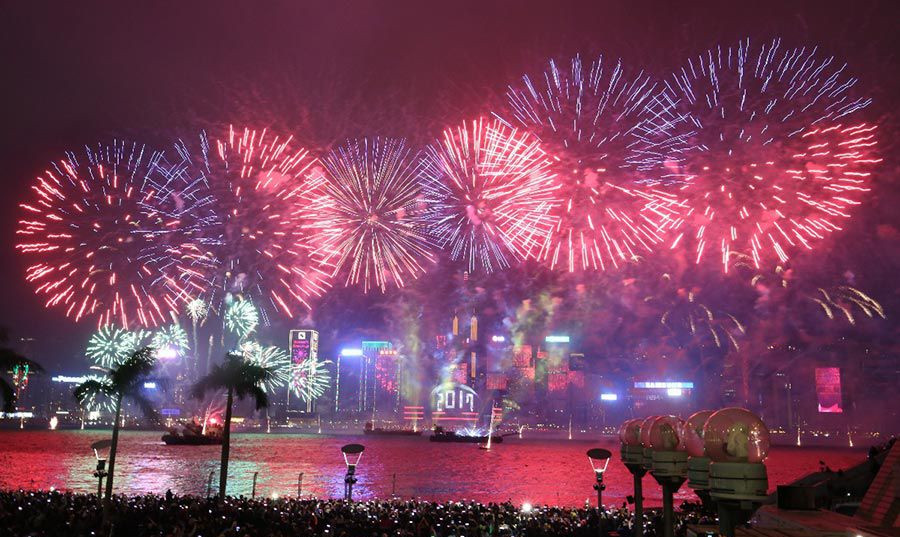 香港新年煙花倒數(shù)慶賀回歸20周年