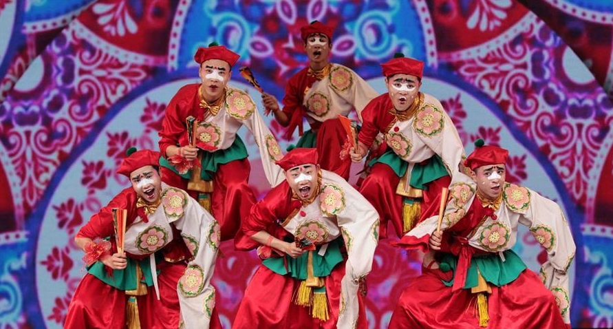 2月4日,演員在廟會開幕儀式上表演四川地方特色舞蹈“乖丑丑”。