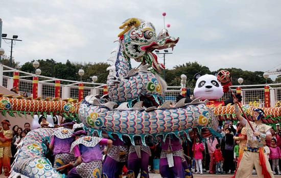 “2017香港歡樂春節(jié)文化廟會——熊貓故里·錦繡四川”大型文藝活動當日在香港九龍公園廣場開幕。廟會共分為5大板塊,介紹四川的旅游文化、名優(yōu)特產(chǎn)美食、大熊貓、非物質(zhì)文化遺產(chǎn),以及民族歌舞。