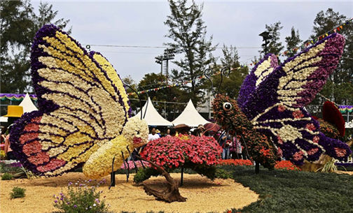 據(jù)悉,“游園樂(lè)”花壇由3萬(wàn)多株不同品種的花卉植物鑲嵌而成,展示游樂(lè)場(chǎng)內(nèi)傳統(tǒng)機(jī)動(dòng)游戲的造型,包括旋轉(zhuǎn)木馬、摩天輪、小火車和碰碰車。