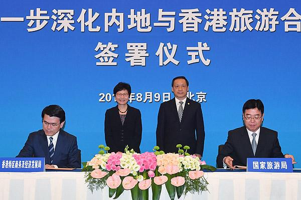 香港特區(qū)政府與國(guó)家旅游局9日在京簽署《關(guān)于進(jìn)一步深化內(nèi)地與香港旅游合作協(xié)議》,進(jìn)一步加強(qiáng)雙方在旅游發(fā)展領(lǐng)域的交流合作。