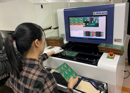 貼片車間工人仔細(xì)檢查剛出產(chǎn)的主板(央廣網(wǎng)記者 馬文靜 攝)