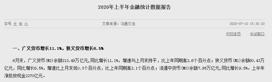一、廣義貨幣增長11.1%,狹義貨幣增長6.5%