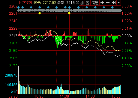 收盤(pán):權(quán)重拖累 滬指重挫1.34%失守2200點(diǎn)