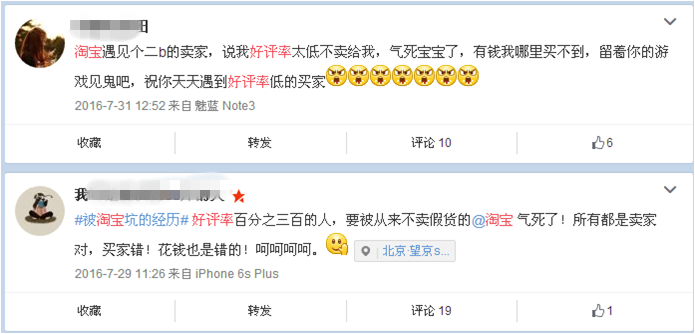 如果這些遭遇還算個(gè)例,那么最近有些淘寶賣家發(fā)出的大招,則深深地影響到了一大批消費(fèi)者。買家在淘寶上給出的好評(píng)率低于一定數(shù)值,就有可能被淘寶賣家拒絕下單。以后,你還敢給差評(píng)嗎?