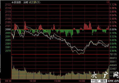 央廣網(wǎng)1月20日消息消息 滬深兩市今日震蕩收低,成交量創(chuàng)出2012年12月以來新低。截至收盤,滬指跌14.38點,跌幅0.68%,報1991.25點,深成指跌20.23點,跌幅0.27%,報7524.33點,創(chuàng)業(yè)板跌22.27點,跌幅1.63%,報1372.74點。