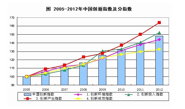 統(tǒng)計局:2012年中國創(chuàng)新指數(shù)為148.2 同比增長6.2%