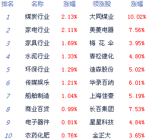 盤面上,蘋果概念、充電樁、煤炭板塊、節(jié)能照明、新疆板塊漲幅靠前。人腦工程、西藏板塊、豬肉概念跌幅靠前。