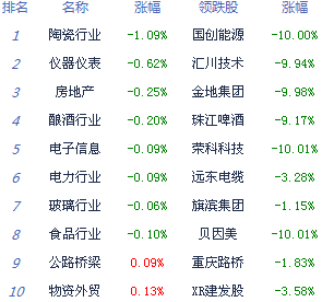 A股市場板塊及個股漲跌幅排行