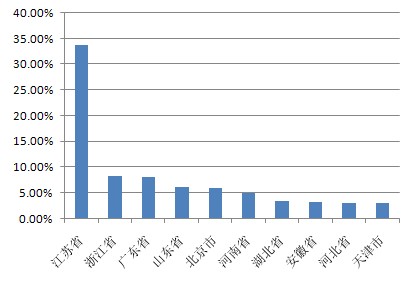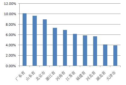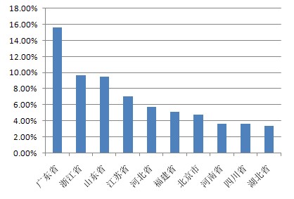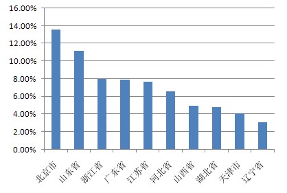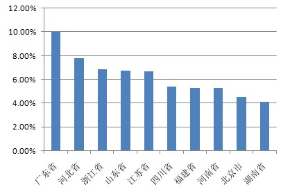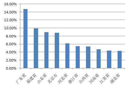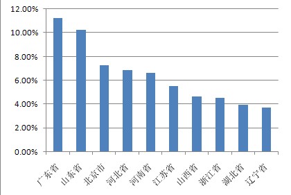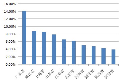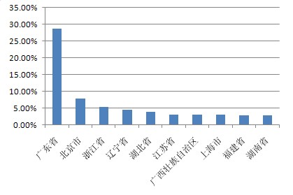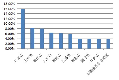 以下為本期十大熱門股票的搜索地域分布(數(shù)據(jù)均來源360搜索):