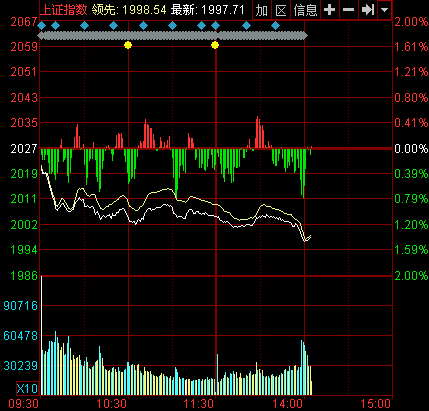 新華網(wǎng)消息 滬指今日小幅低開低走,午后一路下滑,截至發(fā)稿,滬指跌破2000點(diǎn),報(bào)1997.68點(diǎn),跌幅1.42%。